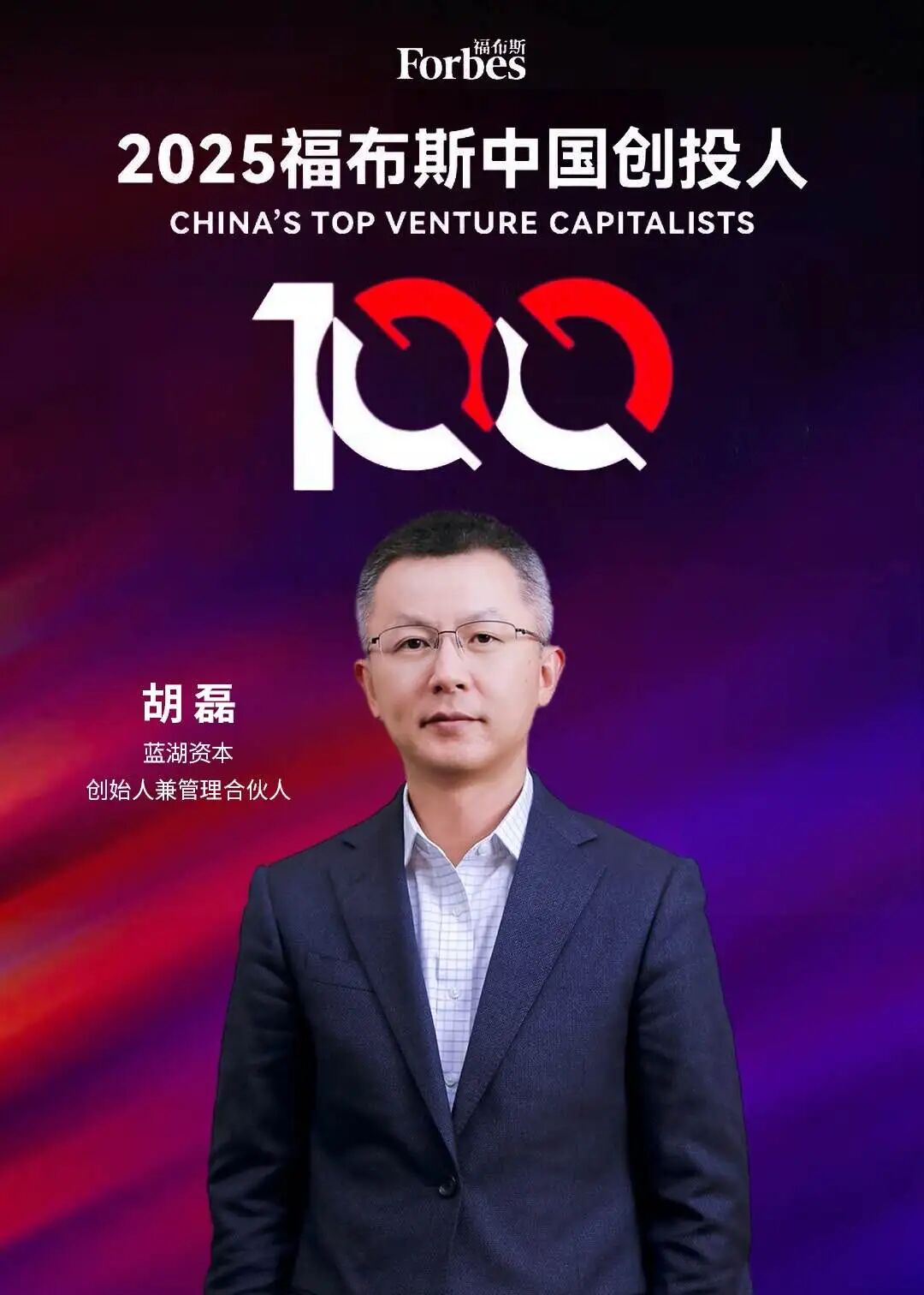 - 藍(lán)湖資本創(chuàng)始人兼管理合伙人胡磊蟬聯(lián)「福布斯中國創(chuàng)投人100」2025-12-22